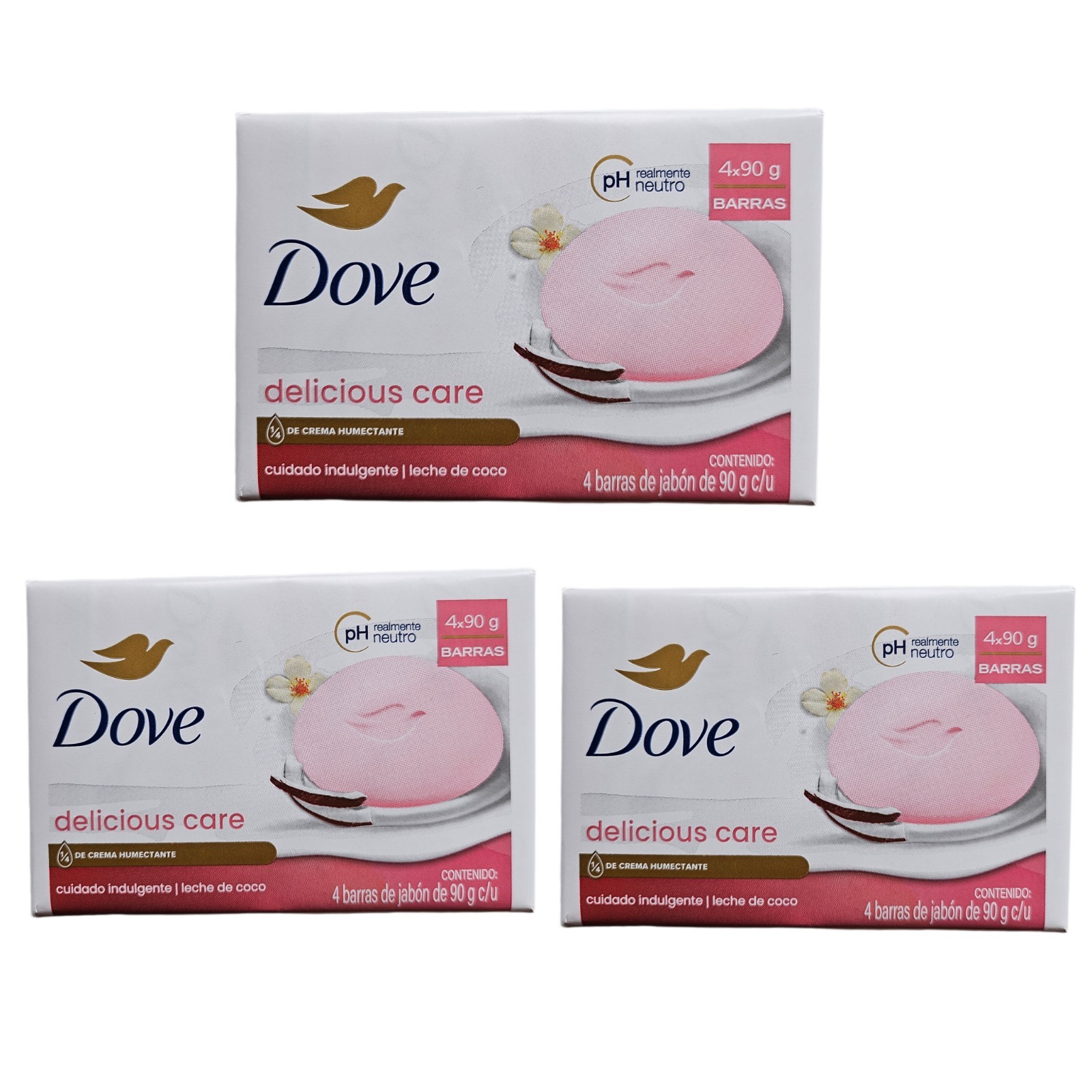 3 x Dove Delicious Care Leche De Coco Coconut Milk Soap 4x90g ( total 12 bars)