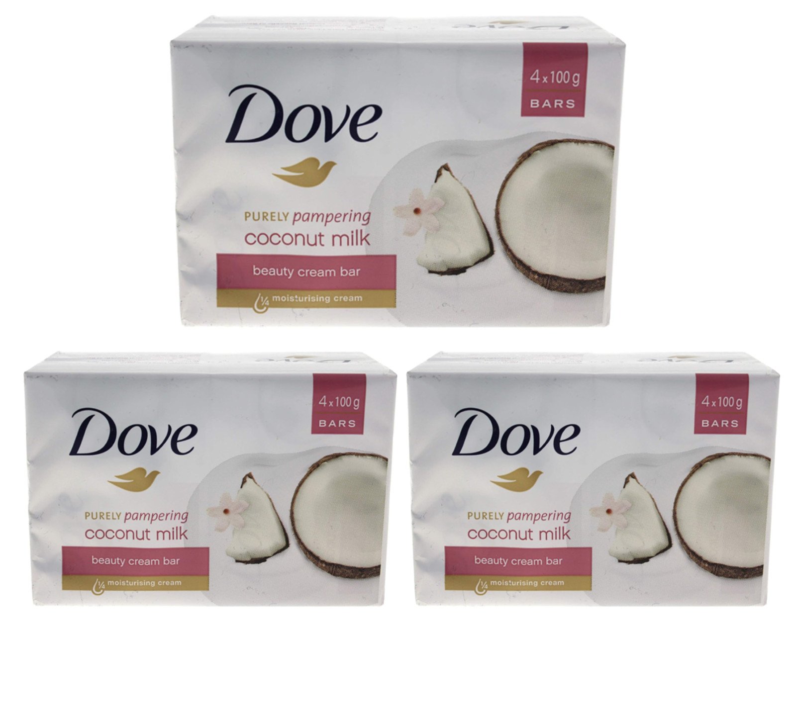 12 x 90g Dove Purley Pampering Coconut Milk Beauty Cream Soap Bar