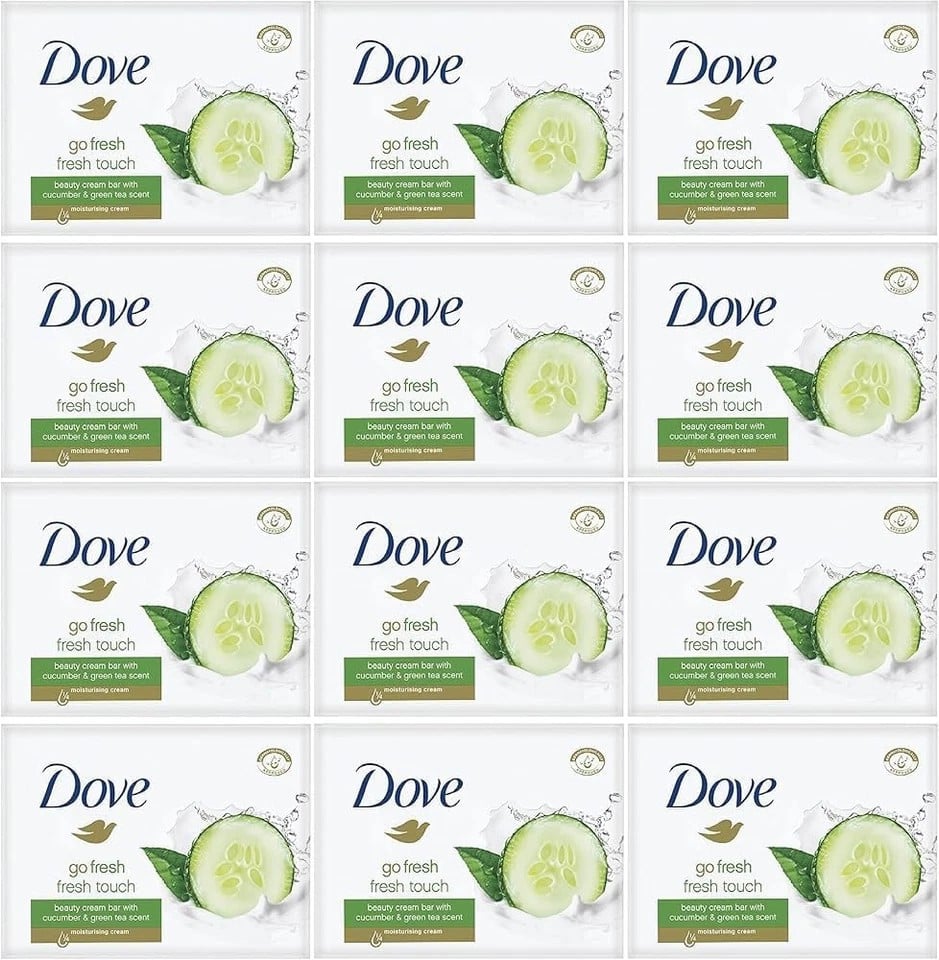 12 x 90g Dove Fresh Touch Soap Bars - Cucumber & Green Tea Scent
