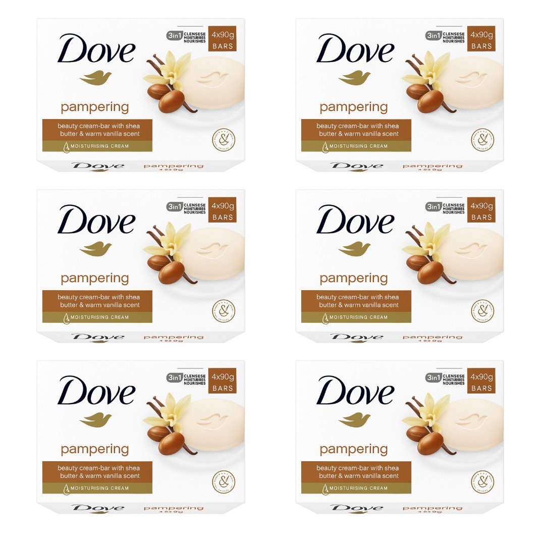 Dove Pampering Shea Butter & Vanilla Scented Soap Bars 4 x 90g - Pack of 6