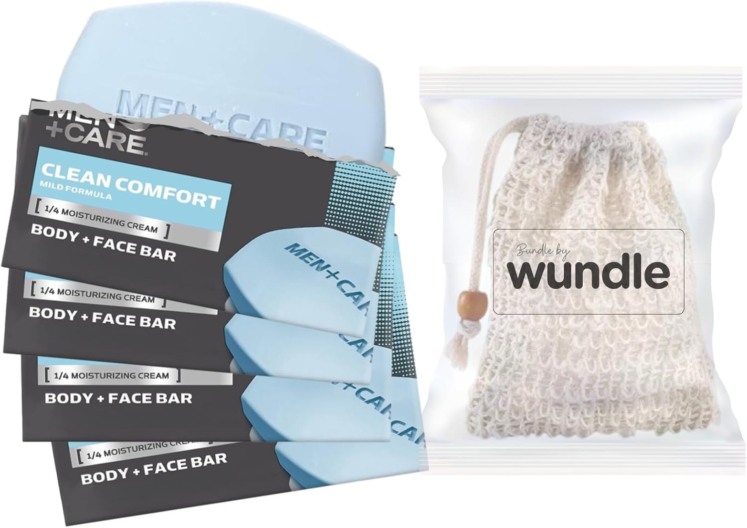 Wundle Bundle Soap Saver Exfoliating Pouch with 4 x Dove's Mens +Care Soap Bars