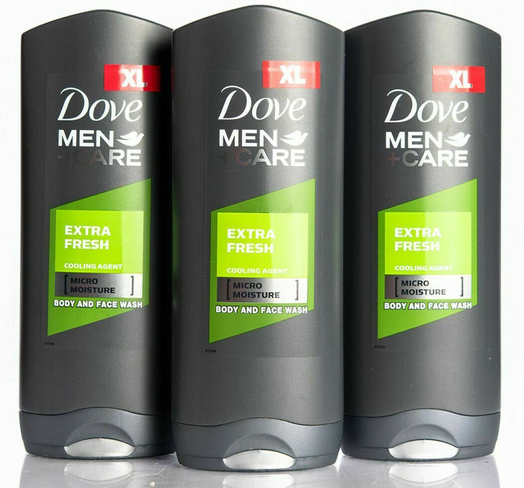 3x Dove Men+ Care Extra Fresh Mens Shower Gel Body Wash, LARGE, Soap, 400 ml XL