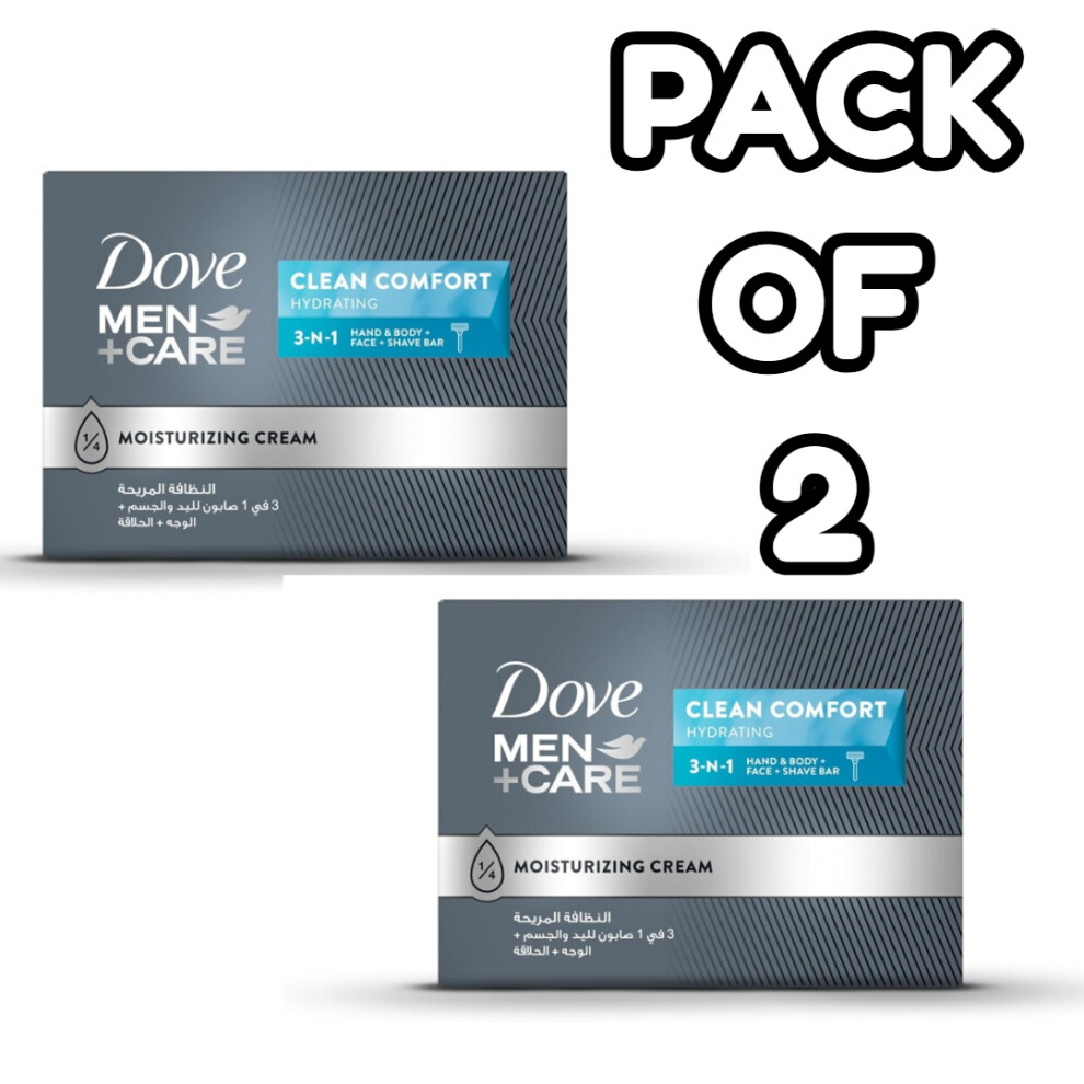 (PACK OF 2) DOVE MEN +CARE Cleansing Bar Clean Comfort Hydrating 3in1 For Clean Face, Body & Shaving With ¼ Moisturizing Cream 100g