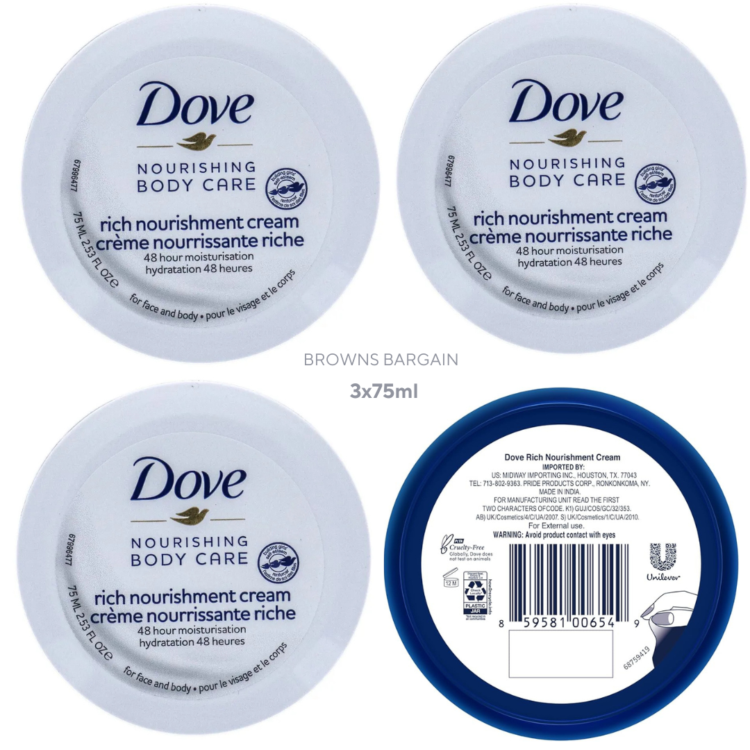 3x 75ml Dove Nourishing Body care rich Nourishment Cream 72h Face Body FREE POST