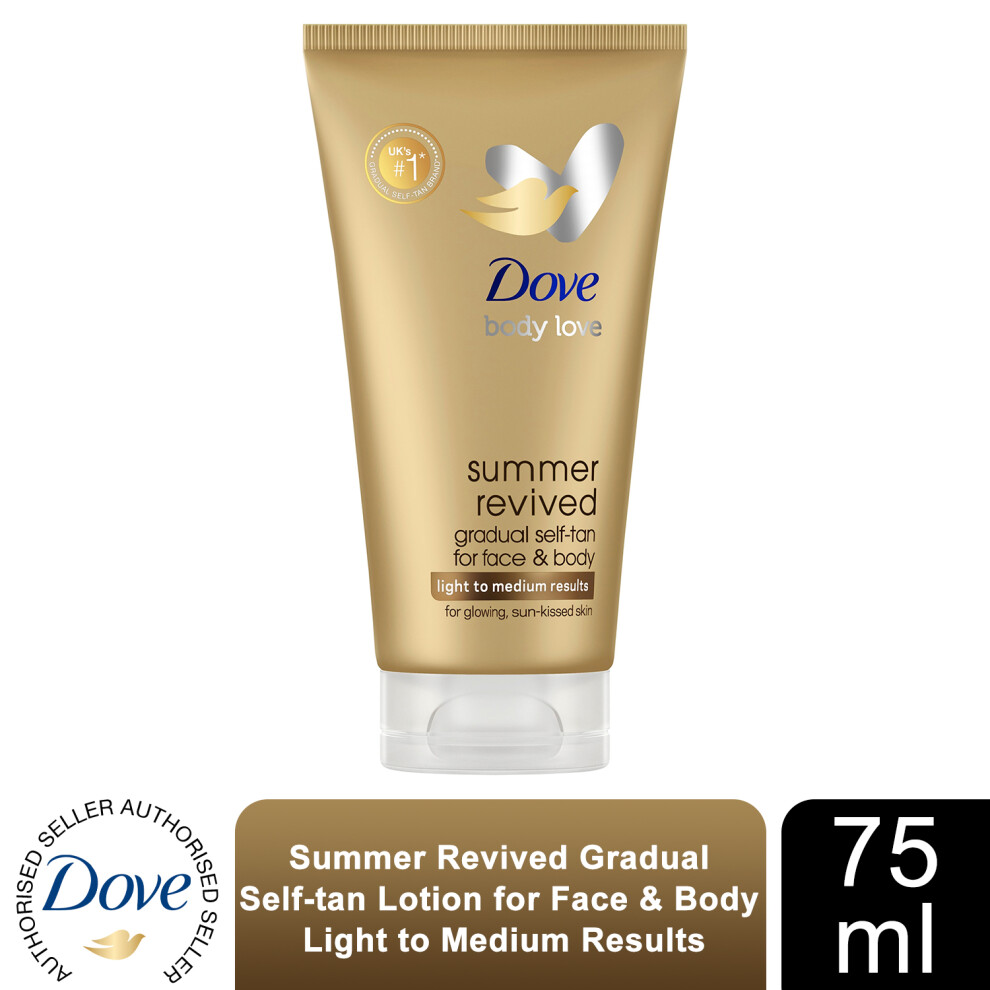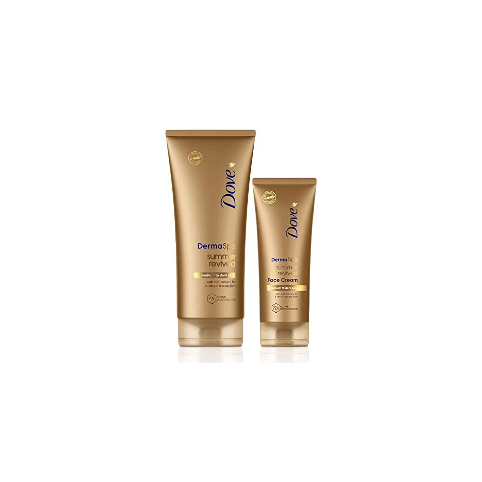 Dove Unilever DermaSpa Body Lotion Summer Revived Self-Tanning Medium to Dark, 200ml with Dove Derma Spa Face Cream Summer Revived Medium to Dark,