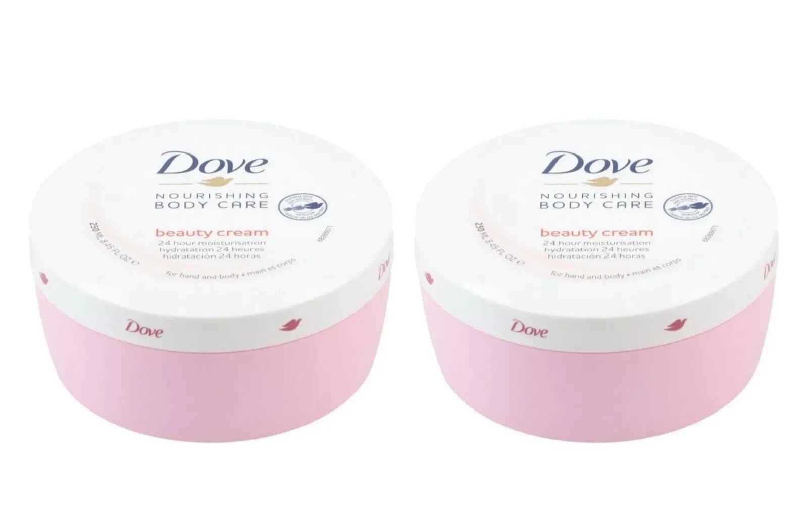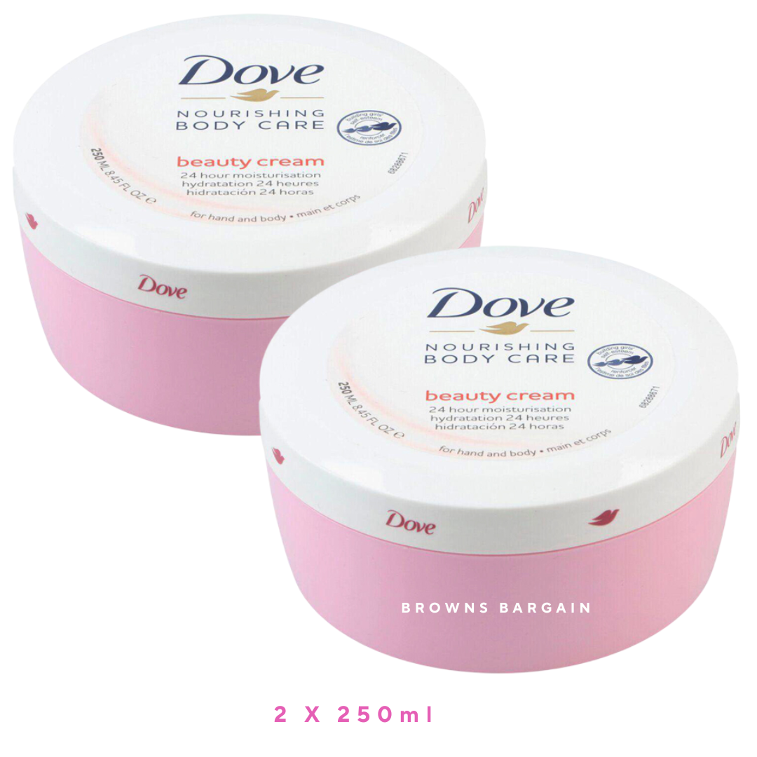 2 x 250ml Dove Nourishing Body Care Beauty Face Cream Tub Helps Heal Dry Skin
