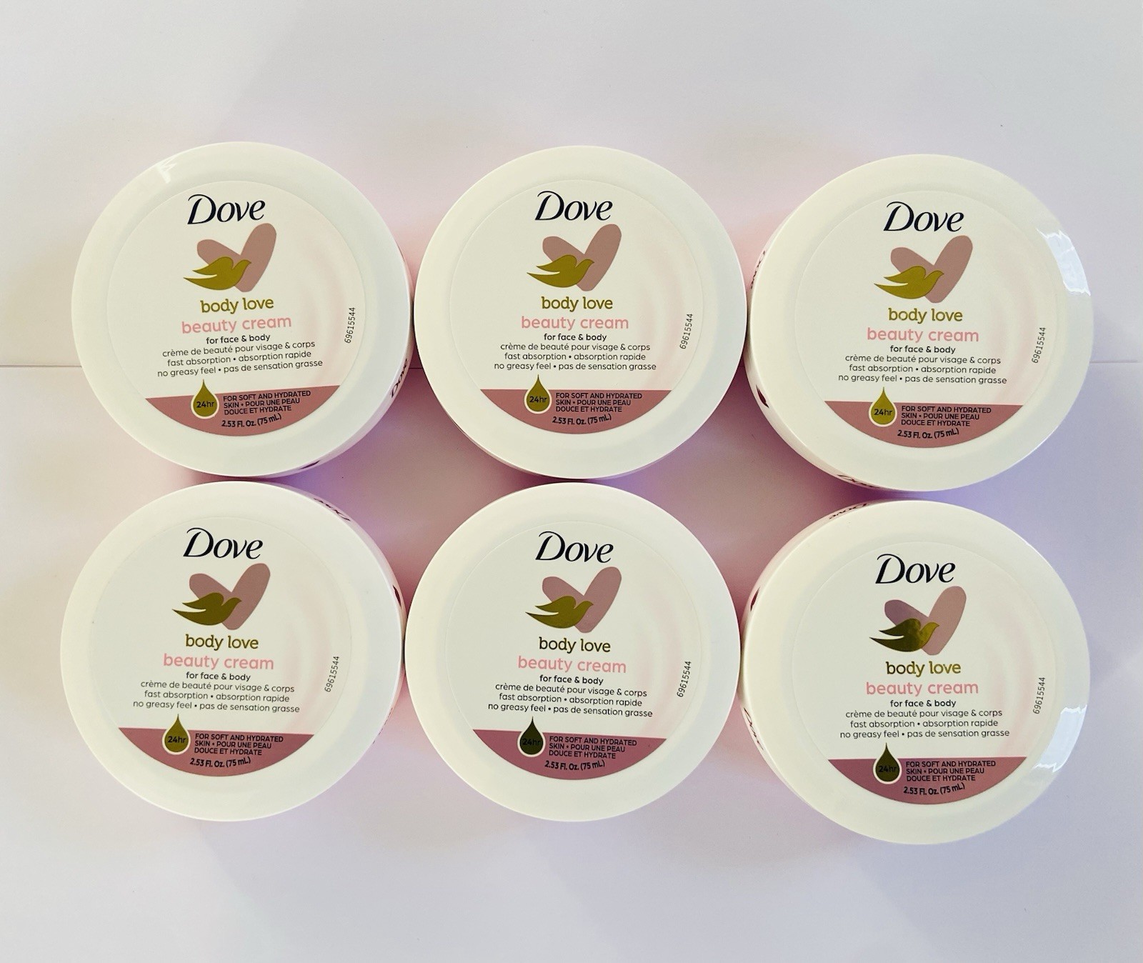 6 x 75ml Dove Body Love Beauty Cream Face & Body for Soft Hydrate Skin