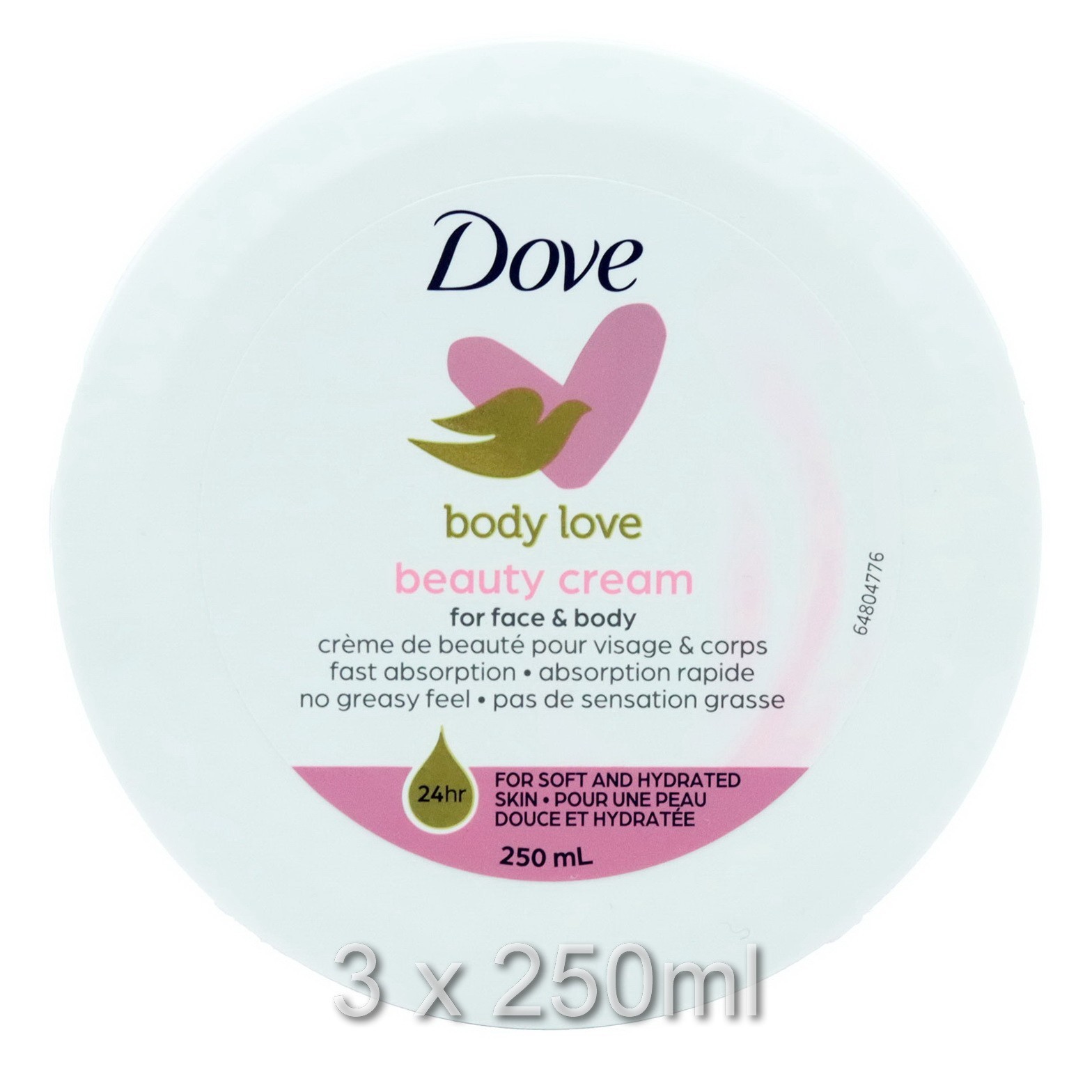 DOVE BODY LOVE BEAUTY CREAM FOR FACE & BODY BIG 250ML TUB 3 PACK