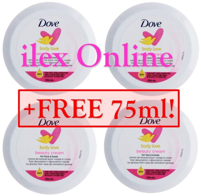 4 x DOVE BODY LOVE BEAUTY CREAM FOR FACE & BODY 250ml each+75ml FREE! ALL SEALED