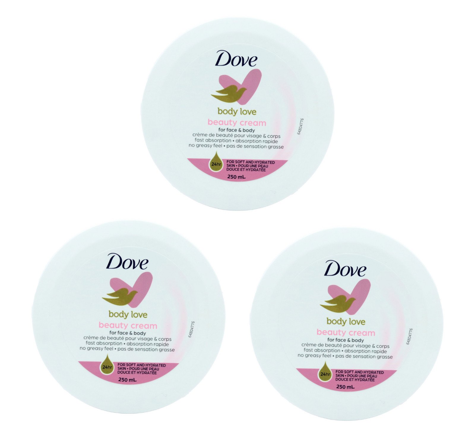 3 x 250ml Tubs Dove Body Love Beauty Cream For Face & Body