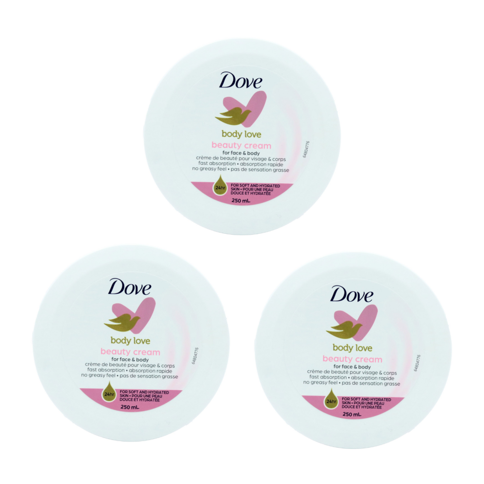 3 x DOVE BODY LOVE BEAUTY CREAM FOR FACE & BODY 250ml each = 750ml NEW & SEALED