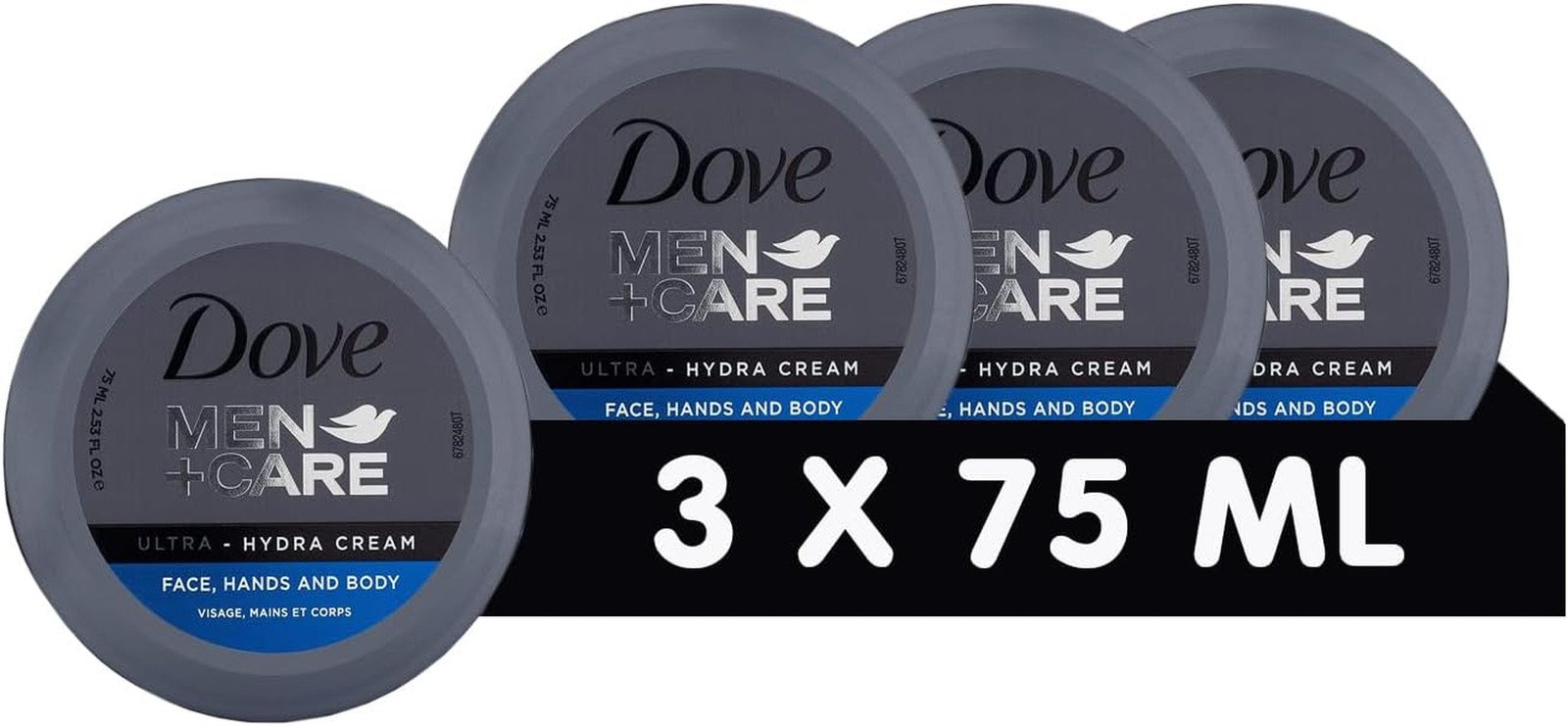 3 x Dove Men+ Care Ultra Hydra Cream 75ml Moisturiser for Face Hands & Body