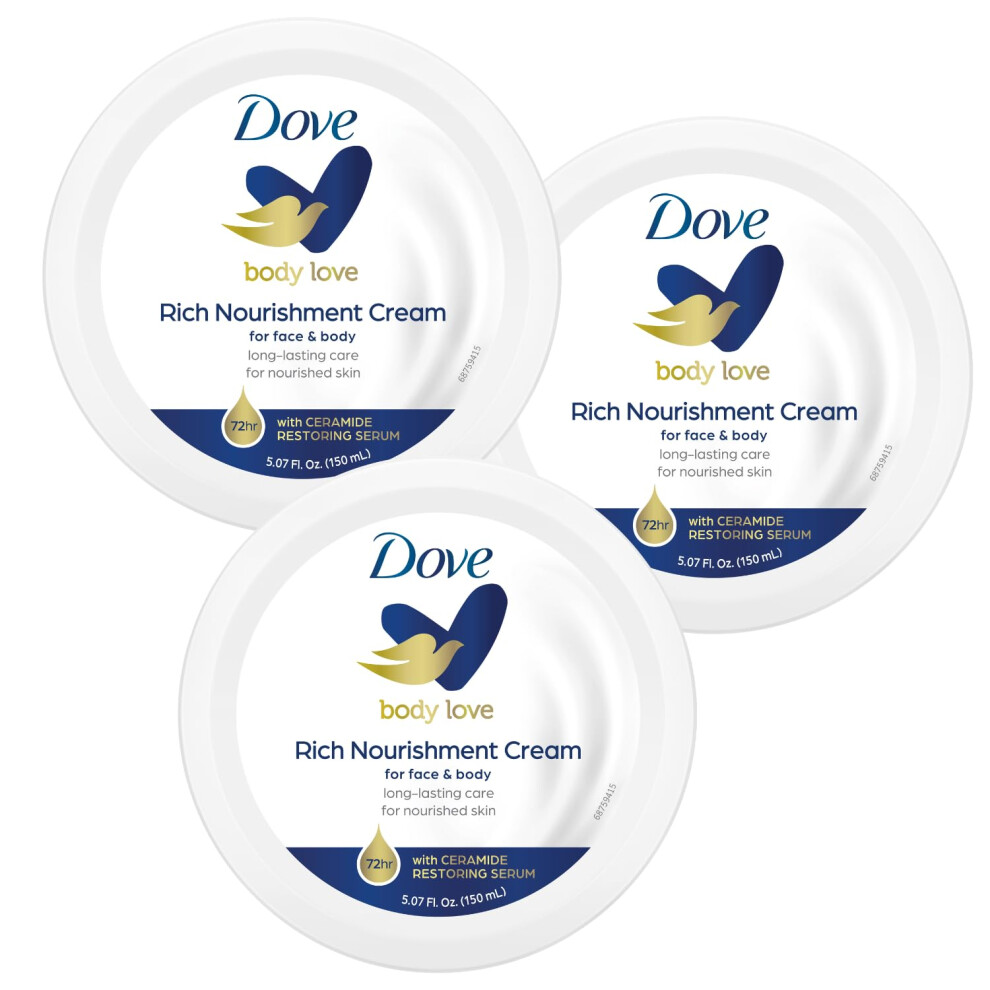 Dove Nourishing Body Care Face Hand and Body Rich Nourishment Cream for Extra Dry Skin with 48-Hour Moisturization 3-Pack 5.07 Oz Each Jar