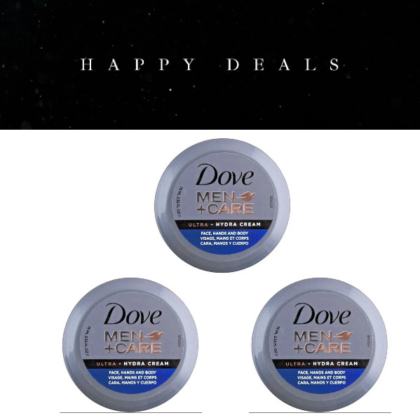 Dove Men+Care Ultra Hydra Cream Face Hands and Body care All Skin Types 3 Pack of 2.53 Oz Each