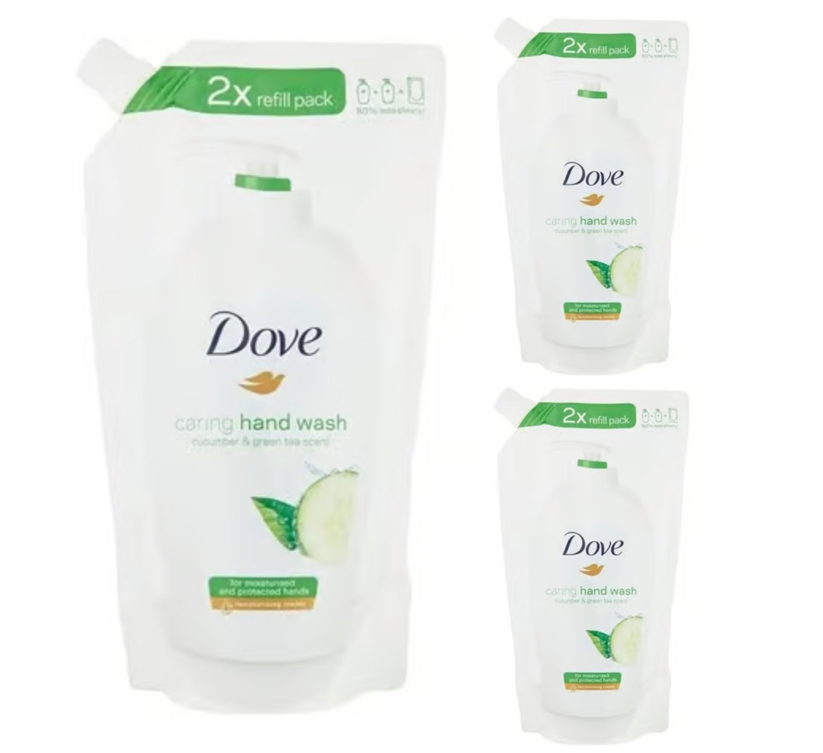 3 x 500ml Dove Go Fresh Fresh Touch Cucumber & Green Tea Liquid Hand Wash Refill