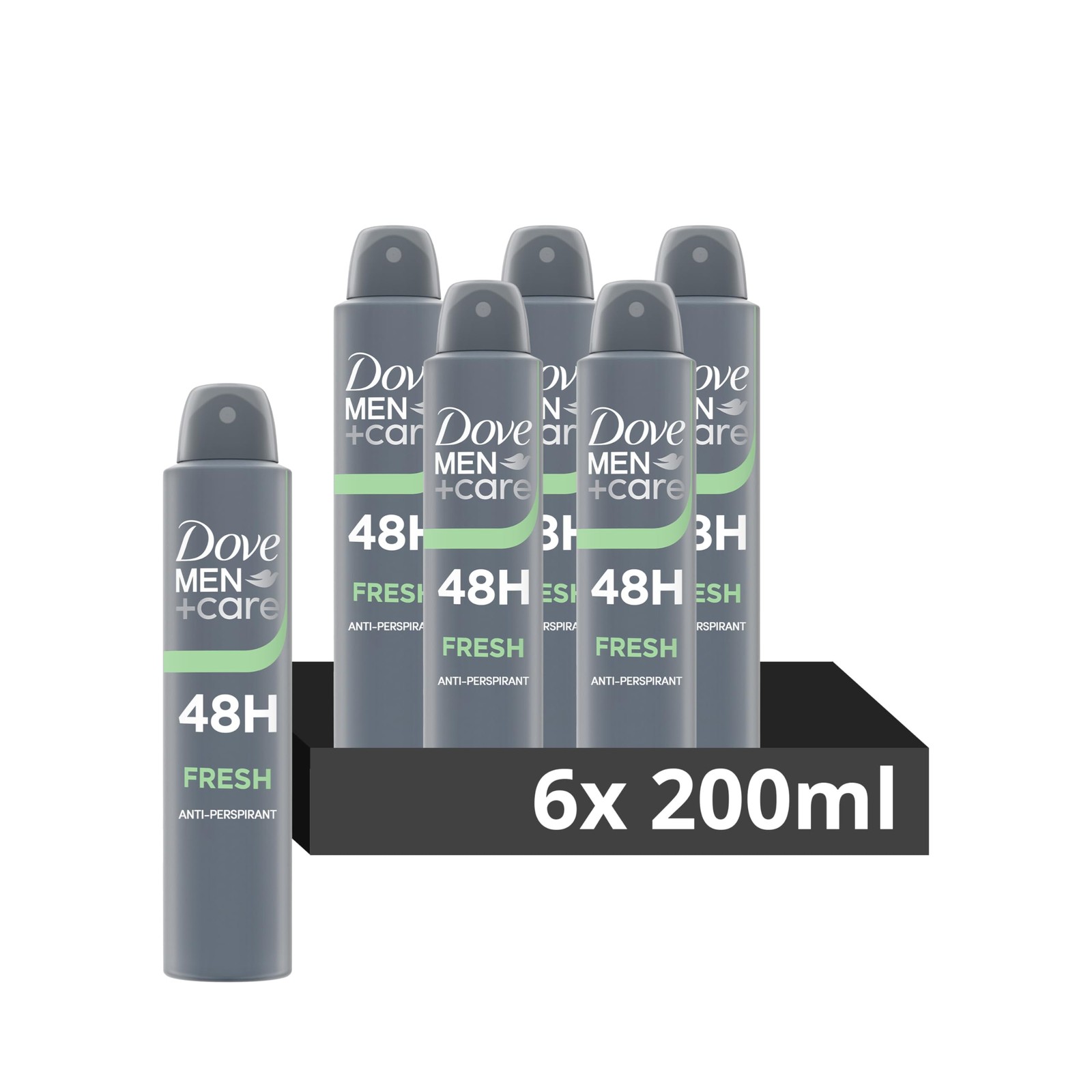 Dove Men+Care Fresh Anti-Perspirant Aerosol Deodorant Spray with ¼ moisturising cream for 48 hour sweat and odour protection 6x 200 ml