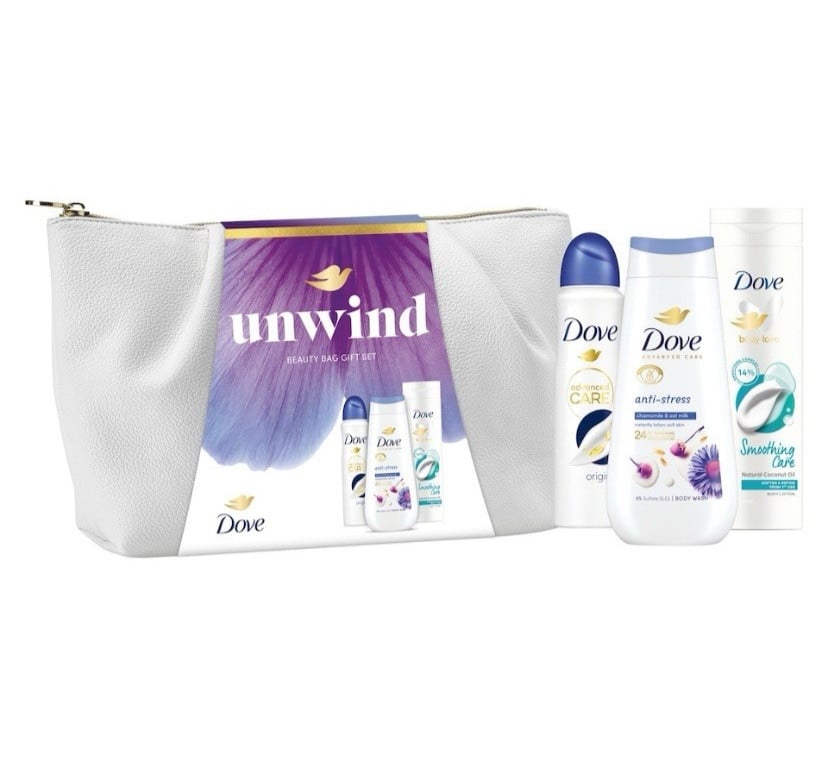 Dove Unwind Beauty Bag Gift Set 3pc Advanced Care Skincare Collection
