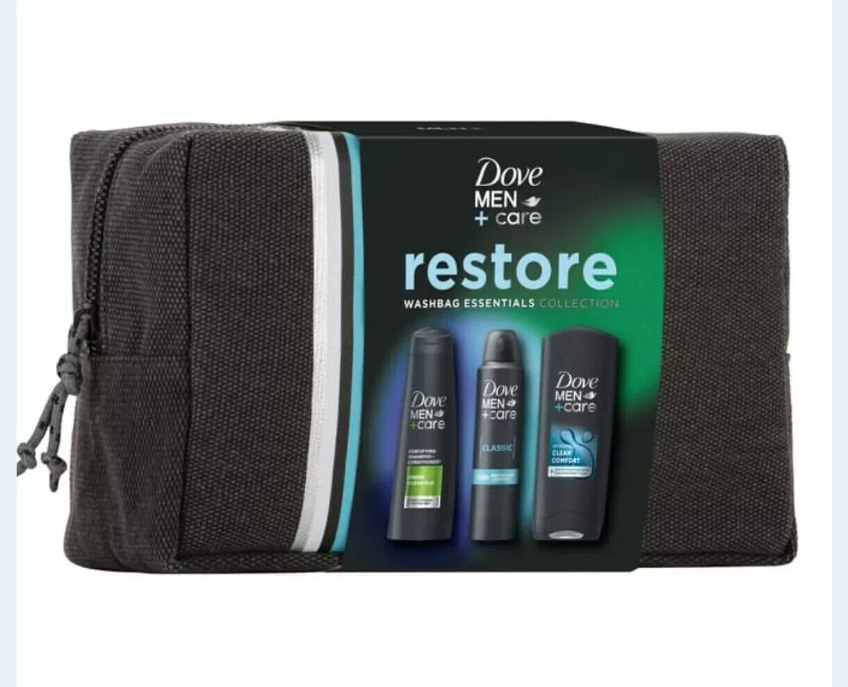 Dove Men+Care Restore Essentials Washbag Collection 3 Pieces Gift Set for Him