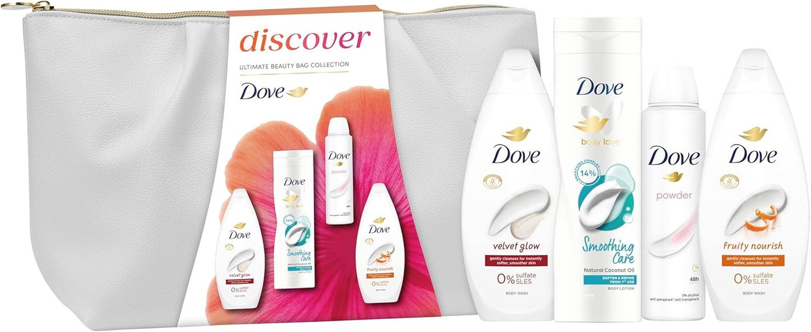 Dove Gift Set Discover Ultimate Beauty Bag Collection with two body washes, a b