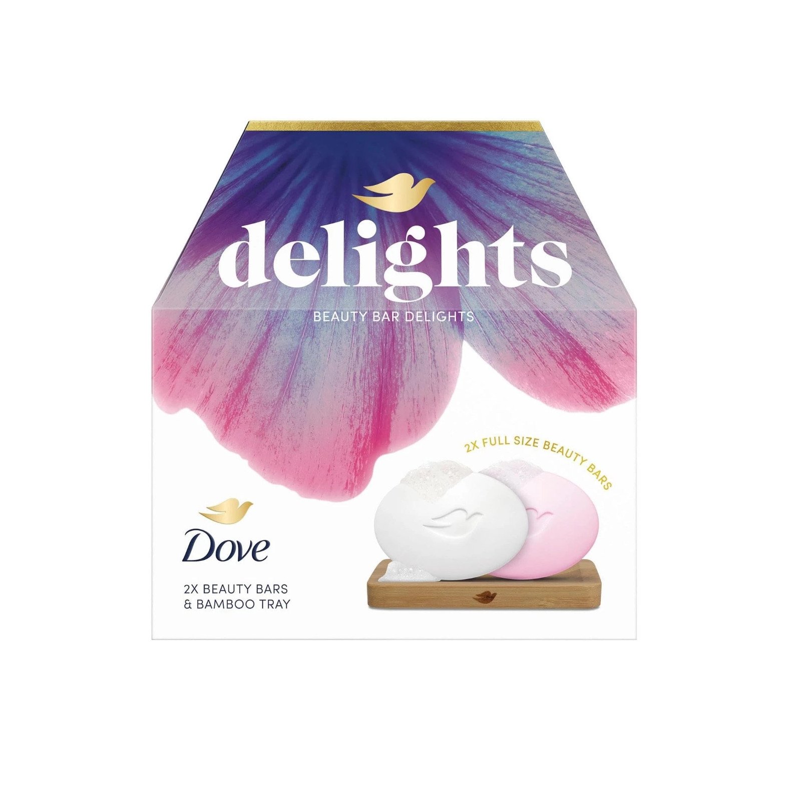 Dove Beauty Bar Delights Gift Set, Original & Pink Soaps with Bamboo Tray