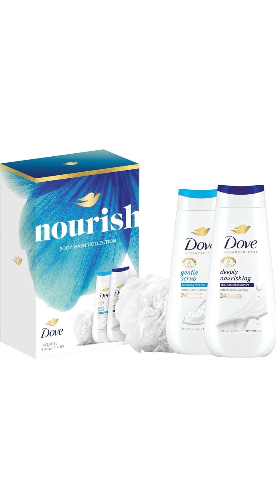 Dove Nourish Duo Gift Set 2 body washes and a shower puff perfect for any...