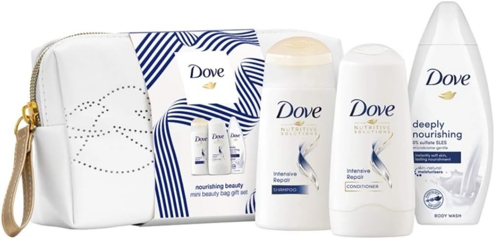 Dove Nourishing Beauty MakeUp Glittery Bag Gift Set Shampo Conditioner Body Wash