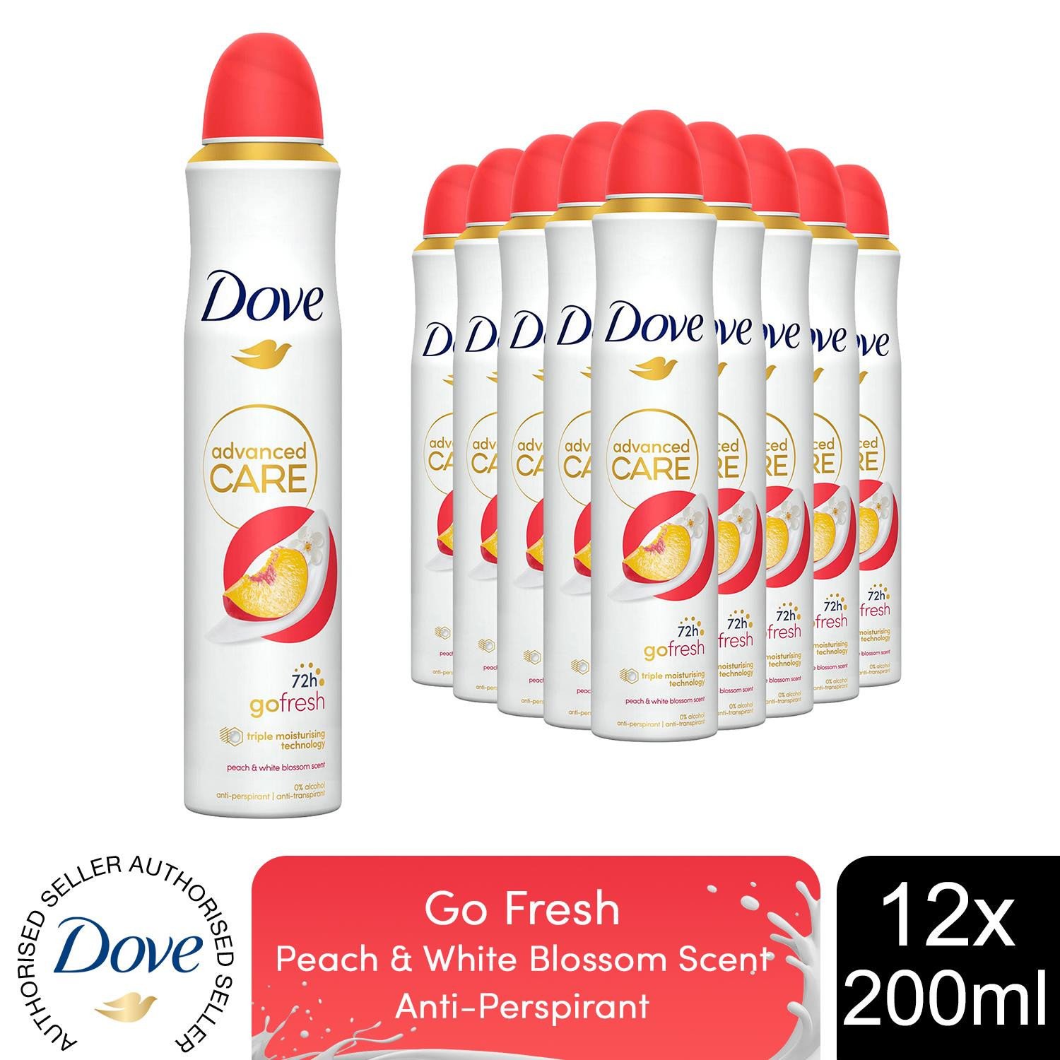Dove Advanced Care Go Fresh AntiPerspirant Spray Peach & White Blossom, 12x200ml