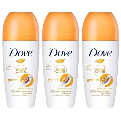 Dove Deodorant Roll On Advance Care Go Fresh Passion Fruit Scent 72H Odour Protection Anti-Transpirant and Anti-Perspirant for Women with Triple Moisturising Technology 50ml, 3 Pack