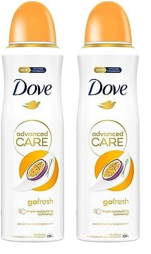 Dove Advanced Care Go Fresh Passion Fruit & Lemongrass Scent Anti-perspirant Deodorant Spray with Triple Moisturising technology aerosol for 72 hours of protection 150 ml (Pack of 2)