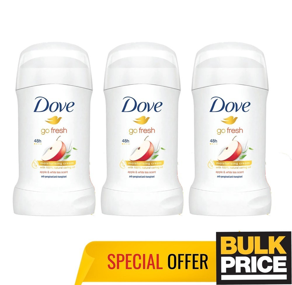 Dove Go Fresh Apple & White Tea Deodorant Stick 48H Sweat Odor Protection 3-Pack