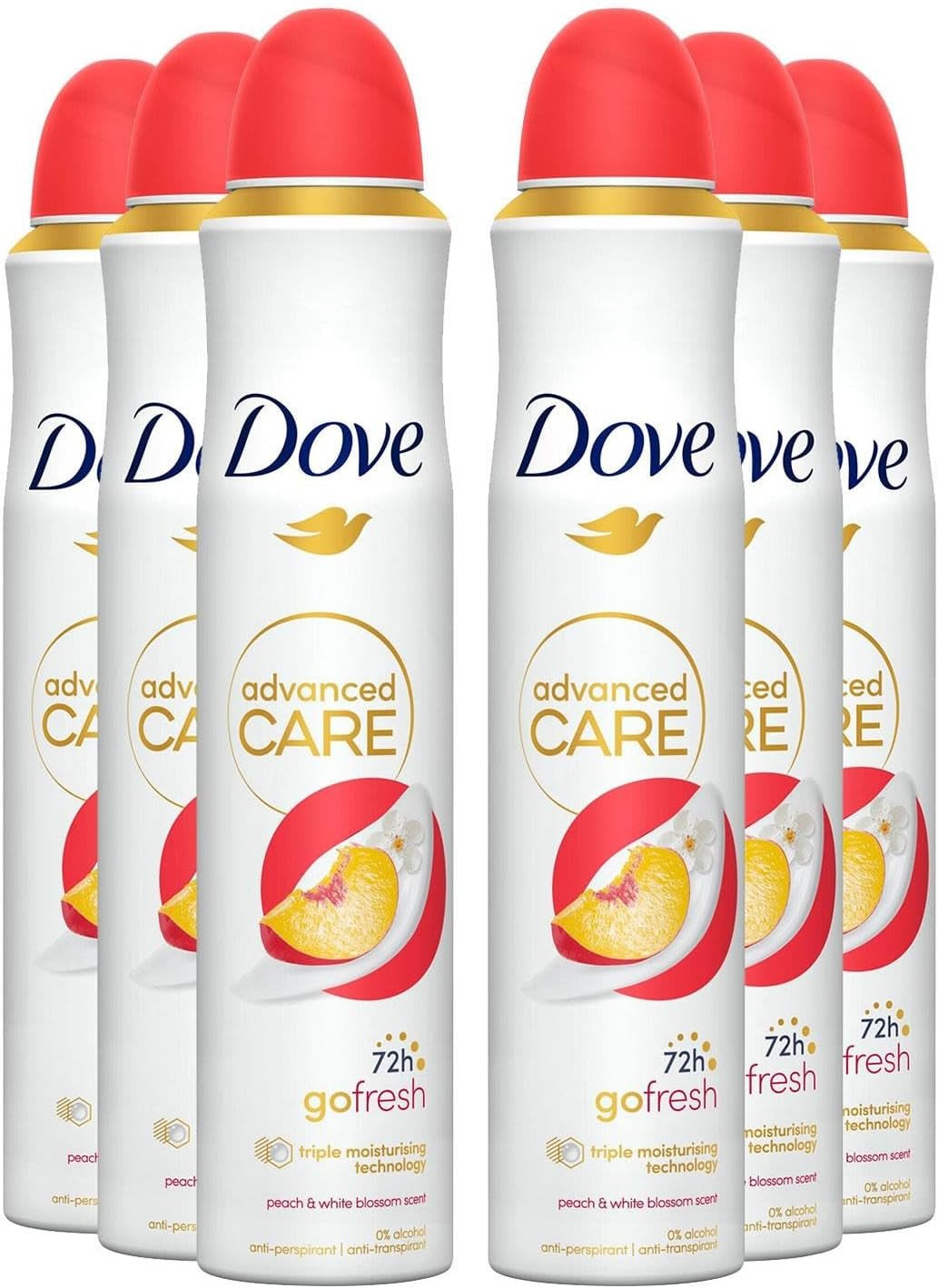 Dove Advanced Care Go Fresh Peach & White Blossom Scent Women's Antiperspirant Deodorant Spray for 72 hour protection against sweat and odour with Pro-Ceramide technology 200 ml, Pack of 6