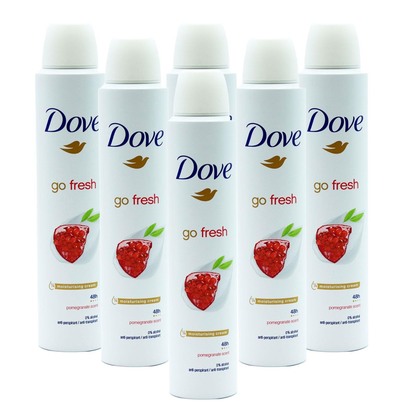 6x Dove Go Fresh Pomegrante Antiperspirant Deodorant Spray 200ml