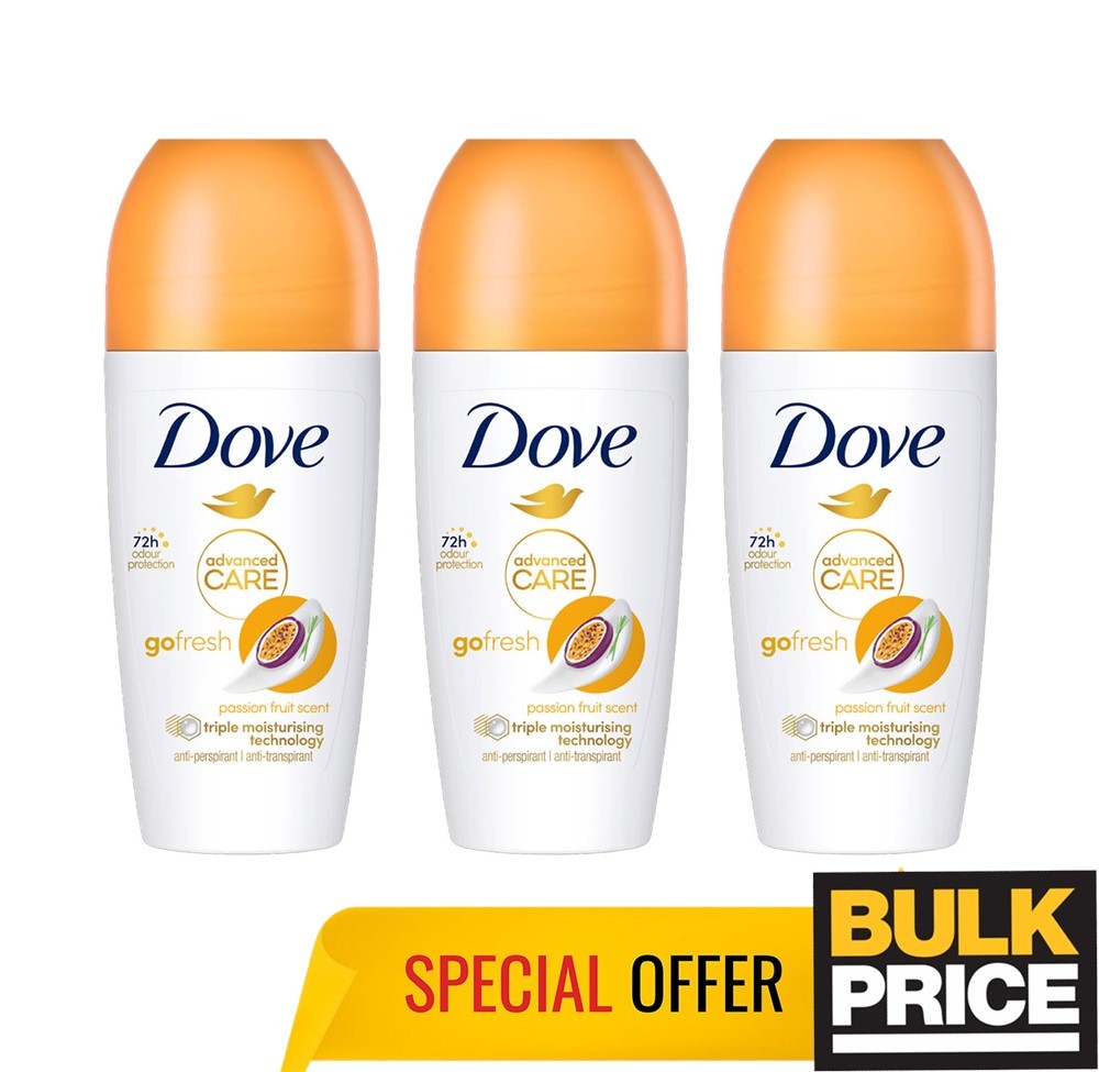 Dove Roll-On Go Fresh Advanced Care Passion Fruit 72H Sweat Odor Shield 3-Pack