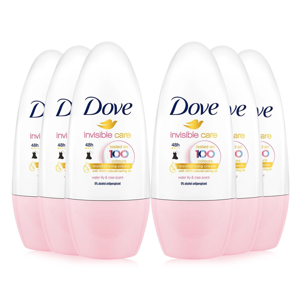 6 X 50ml Dove Invisible Dry Roll On Deodorant 48h Anti-Perspirant