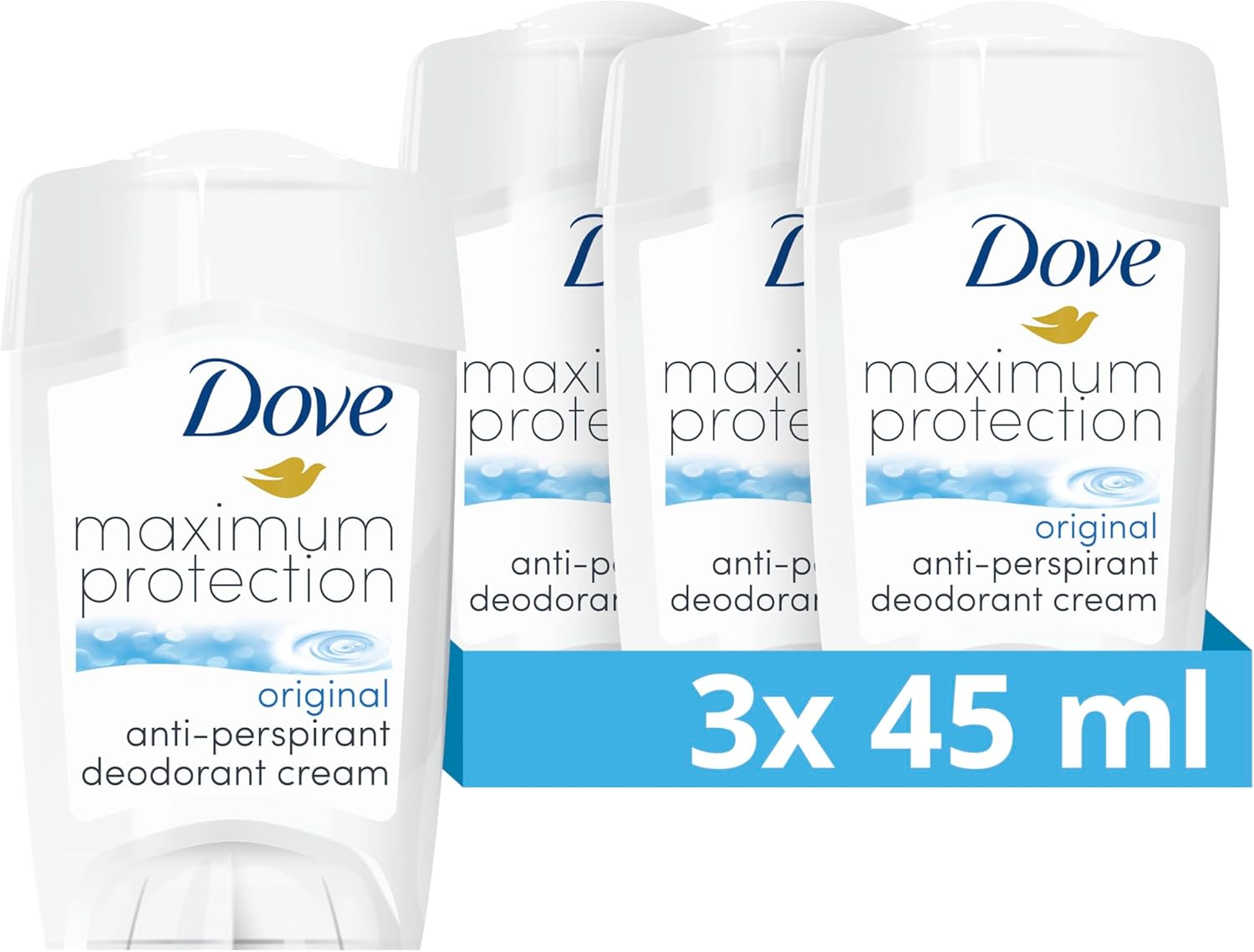 Dove Maximum Protection Original Clean Anti-perspirant Cream Stick with ¼ moisturising cream our most effective deodorant 3x 45 ml