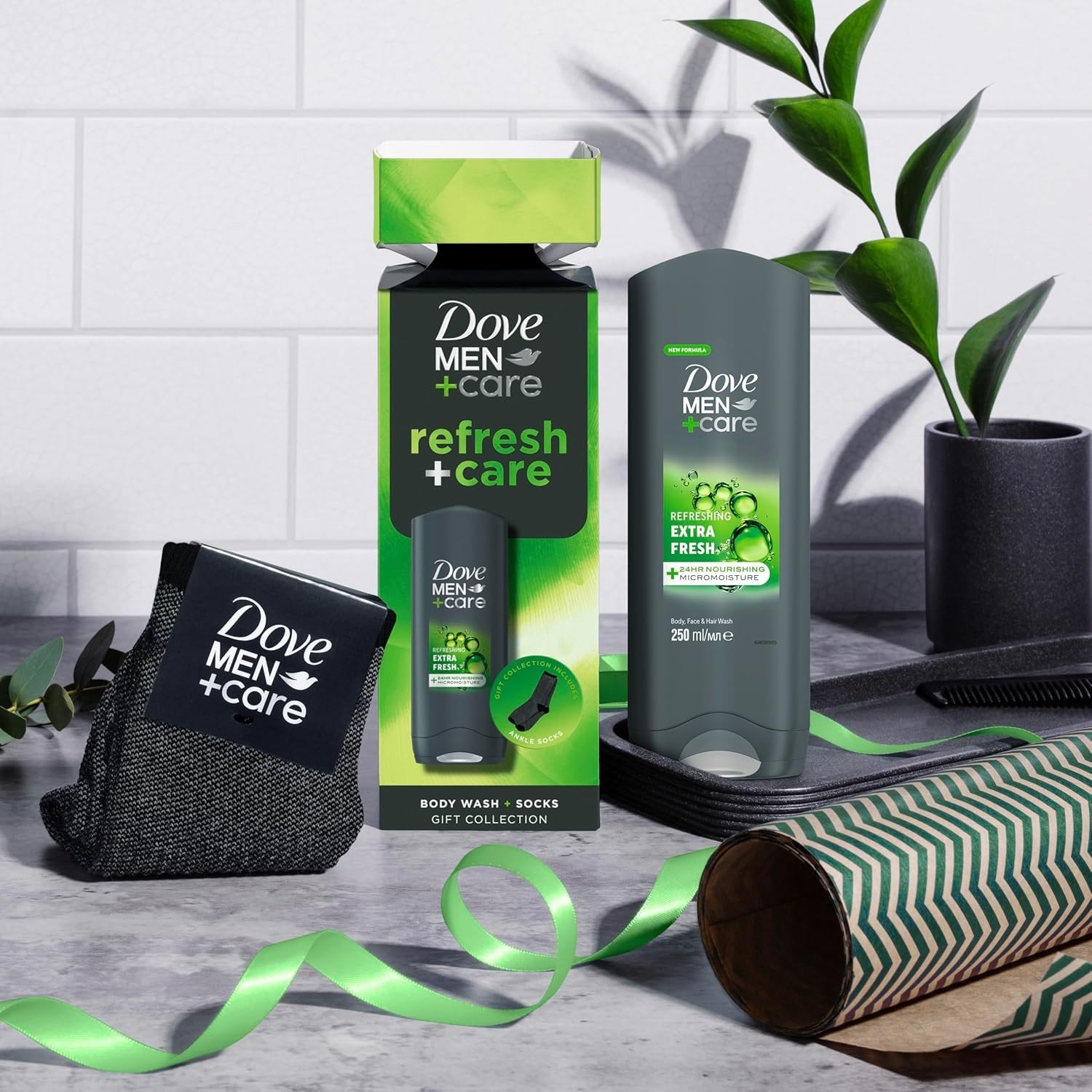 Dove Men+Care Refresh+Care Body Wash & Socks Gift Set with a 3-In-1 Hair, Face &