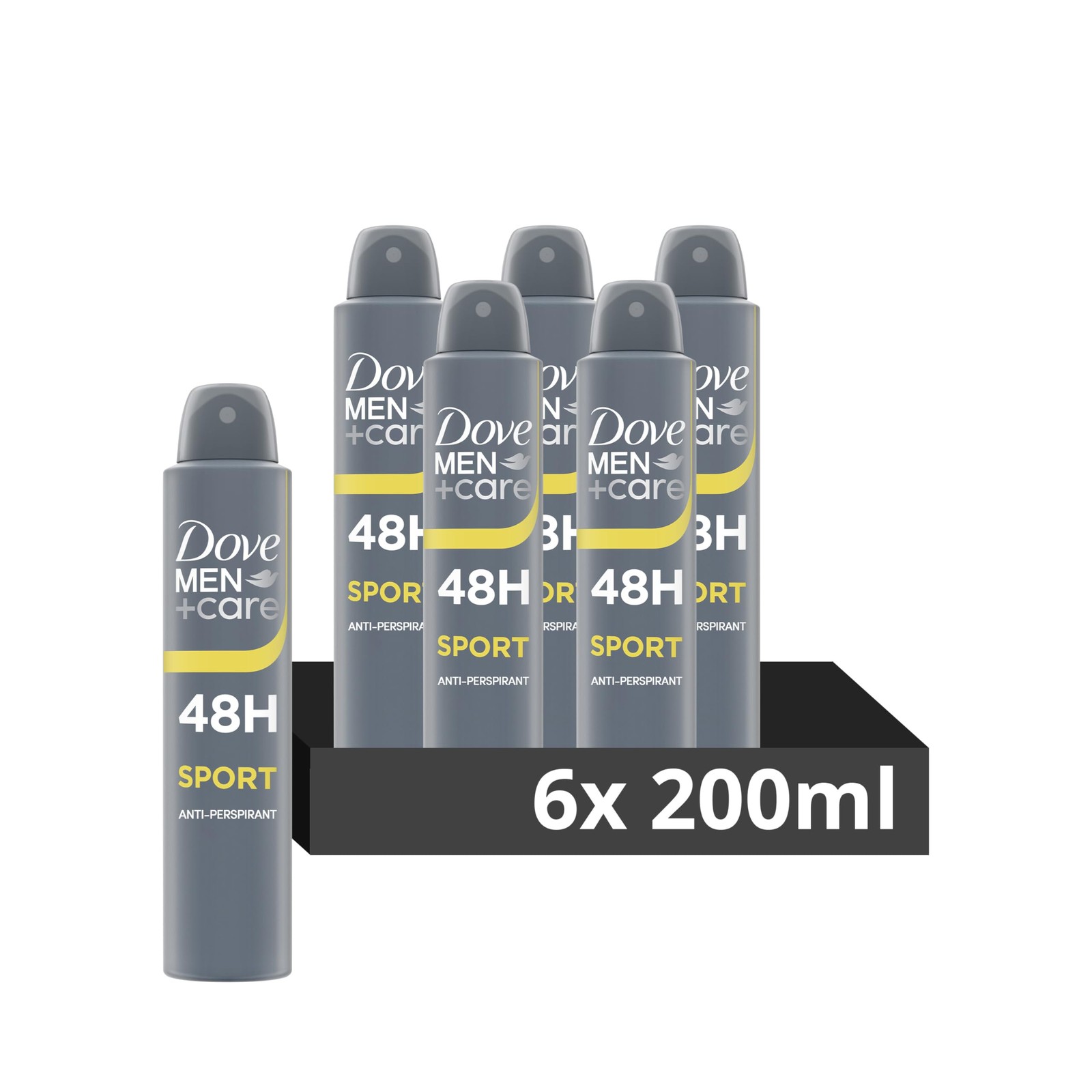 Dove Men+Care Sport Men's Antiperspirant Deodorant Body Spray for 48 hour sweat and odour protection with ¼ moisturising cream 200 ml, Pack of 6