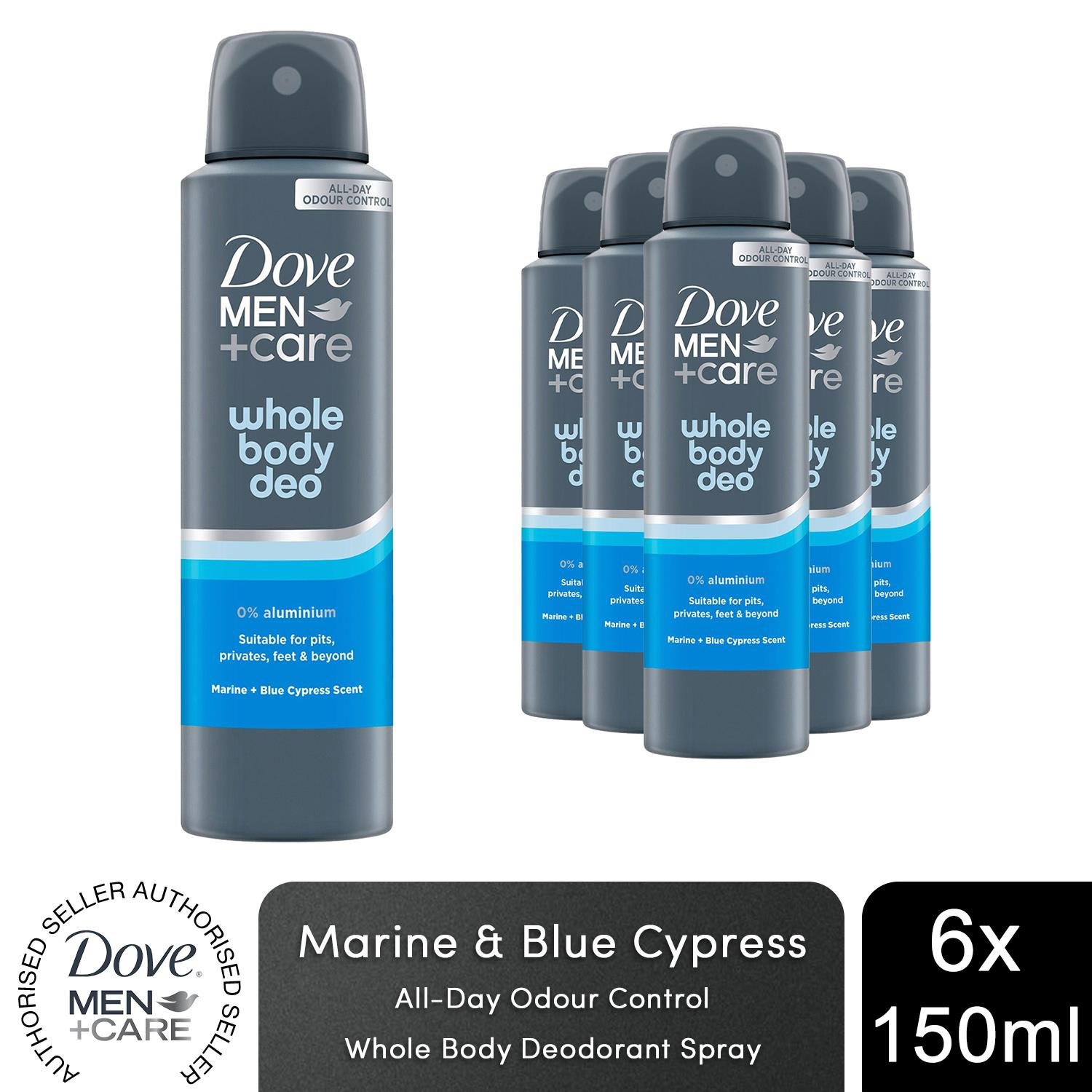 Dove Men+Care Whole Body Bamboo Aloe or Marine Cypress Deodorant Spray 150ml,6pk