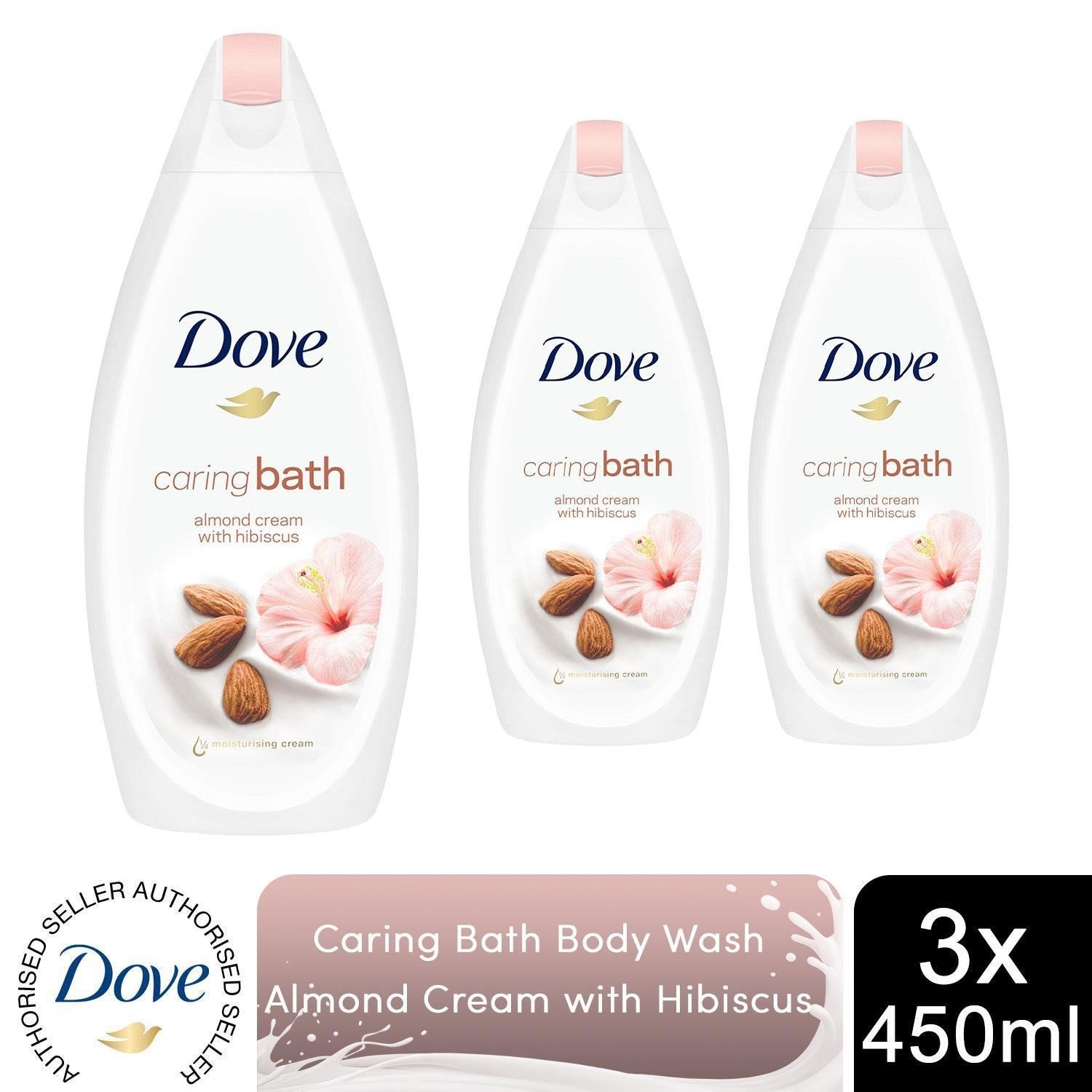 Dove Caring Bath Almond Cream and Hibiscus Moisturising Cream Bath Soak, 3x450ml