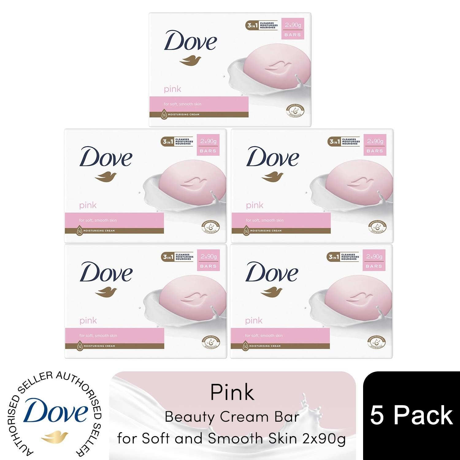 Dove Pink Moisturising Beauty Cream Bar for Soft and Smooth Skin, 2 x 90g, 5pk