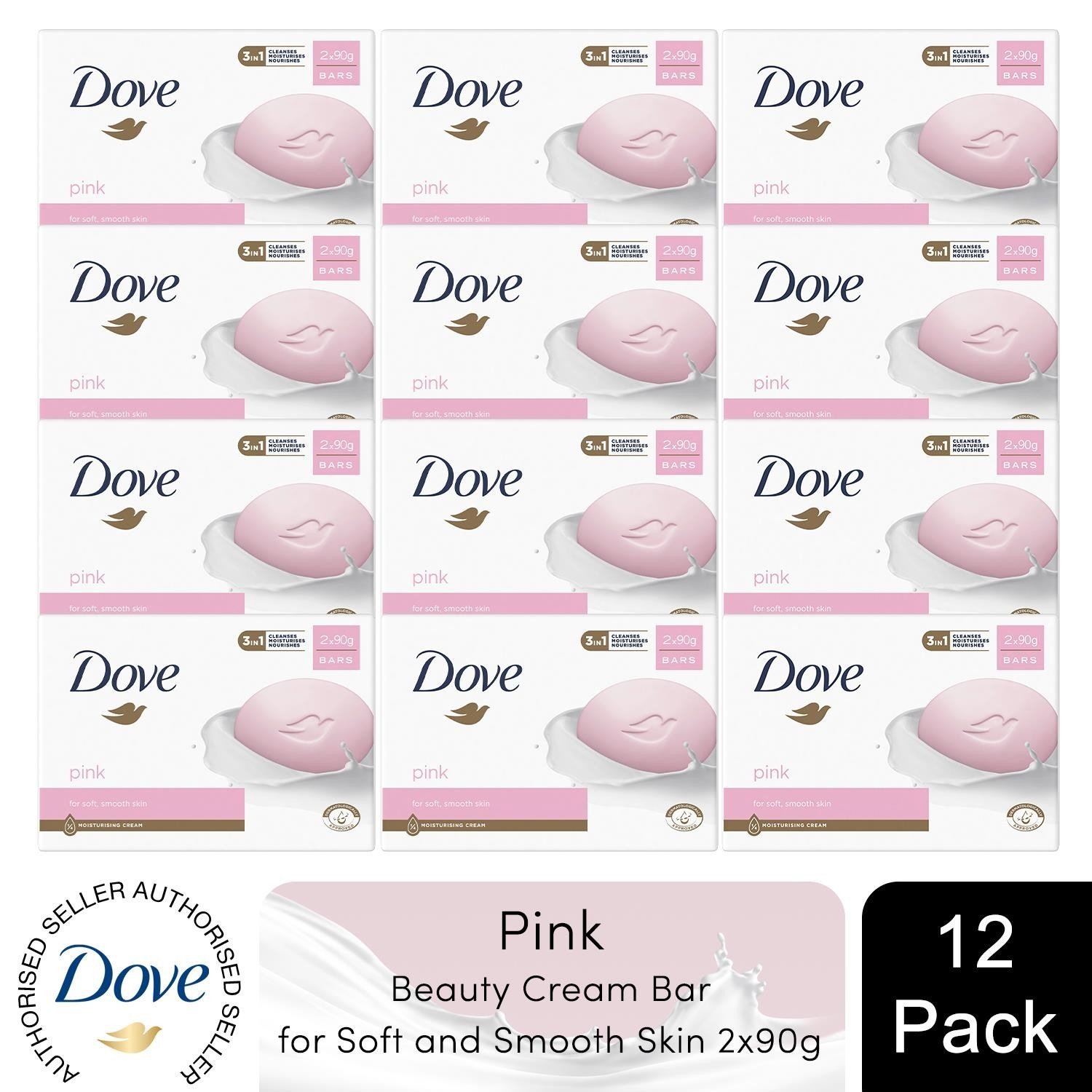 Dove Pink Moisturising Beauty Cream Bar for Soft and Smooth Skin, 2 x 90g, 12pk