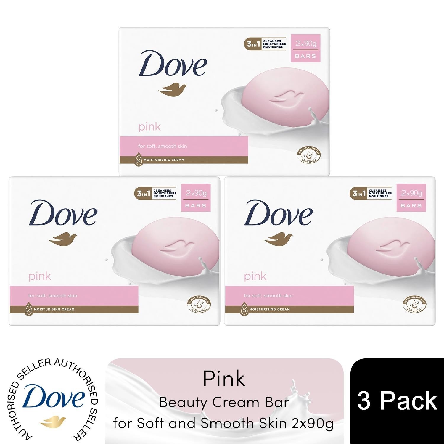 Dove Pink Moisturising Beauty Cream Bar for Soft and Smooth Skin, 2 x 90g, 3pk
