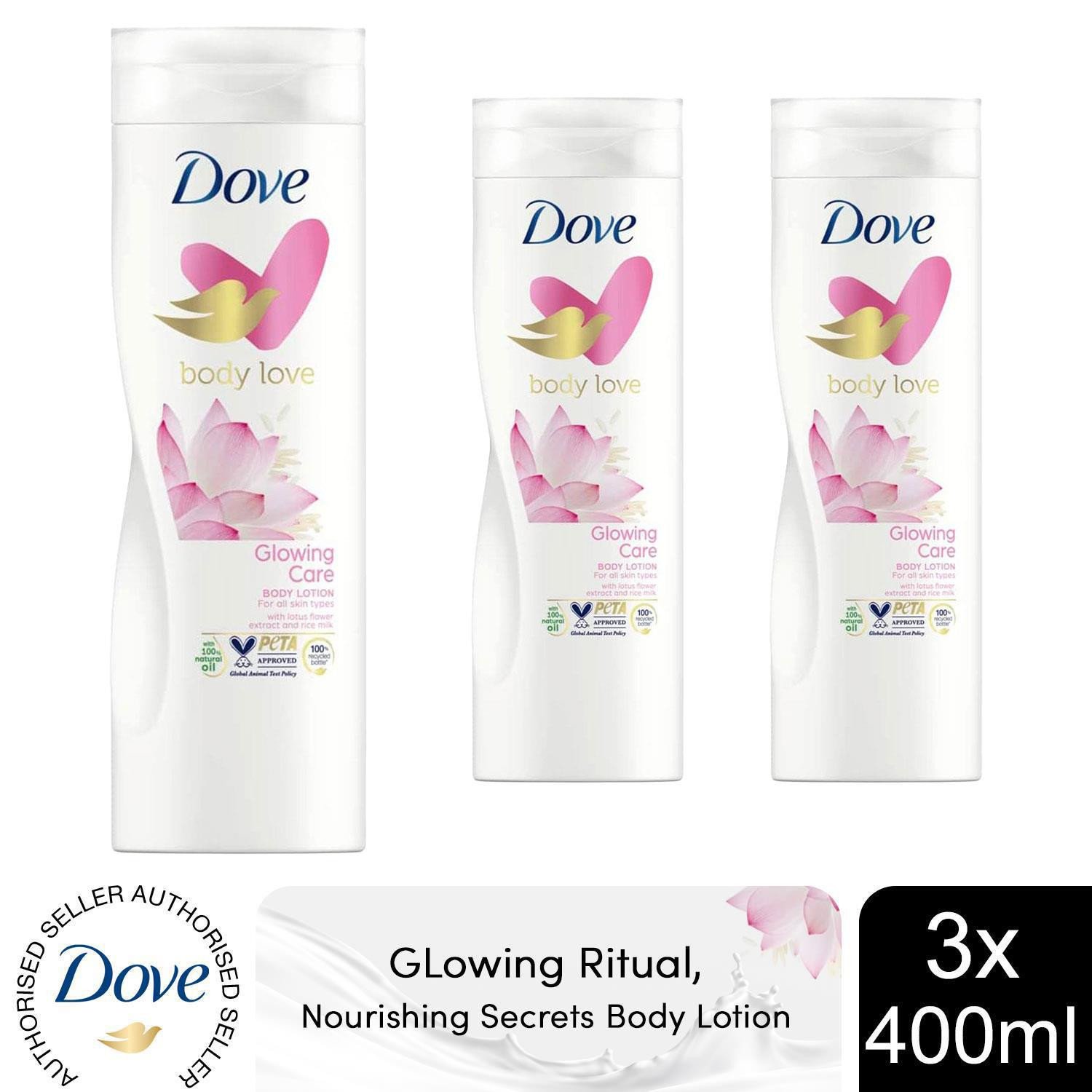 3 x Dove Nourishing Secrets Body Lotion Lotus Flower Extract & Rice Milk 400ml