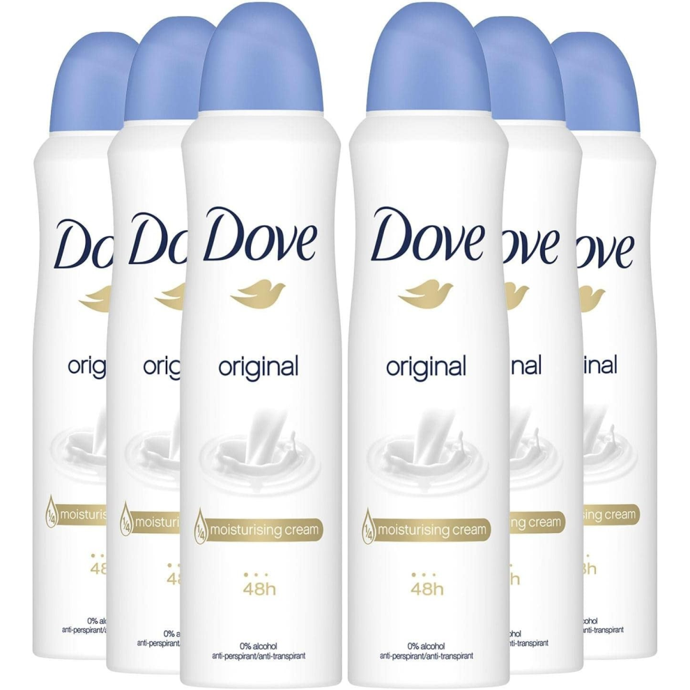6 x 150ml Dove Original Anti-Perspirant Deodorant Spray 0% Alcohol