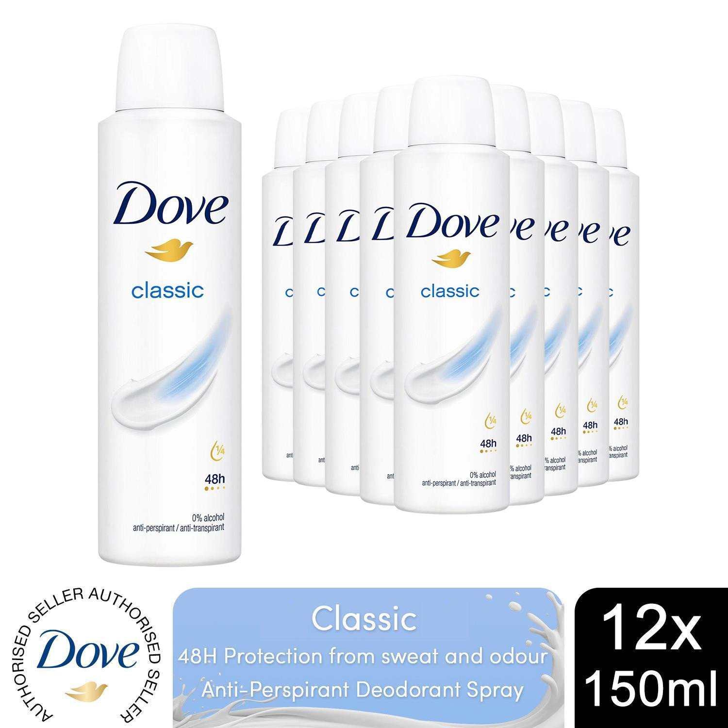 Dove Classic Anti-Perspirant with 48H Sweat Protection Deo for Women 150ml, 12pk