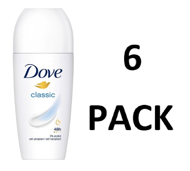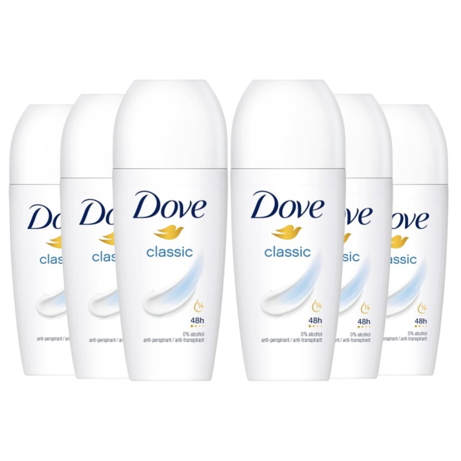 6 x Dove Classic Roll On Anti-Perspirant 48H of Sweat & Odour Protection, 50ml