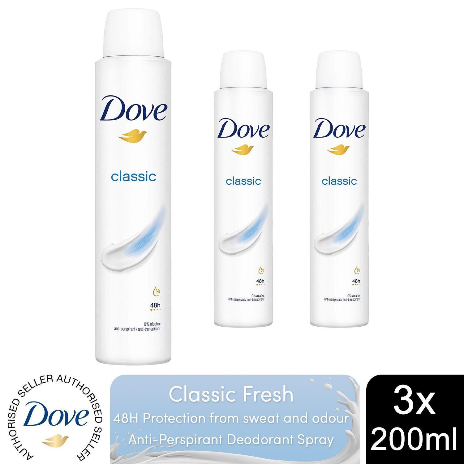Dove Classic Anti-Perspirant with 48H Sweat Protection Deo for Women 200ml, 3pk