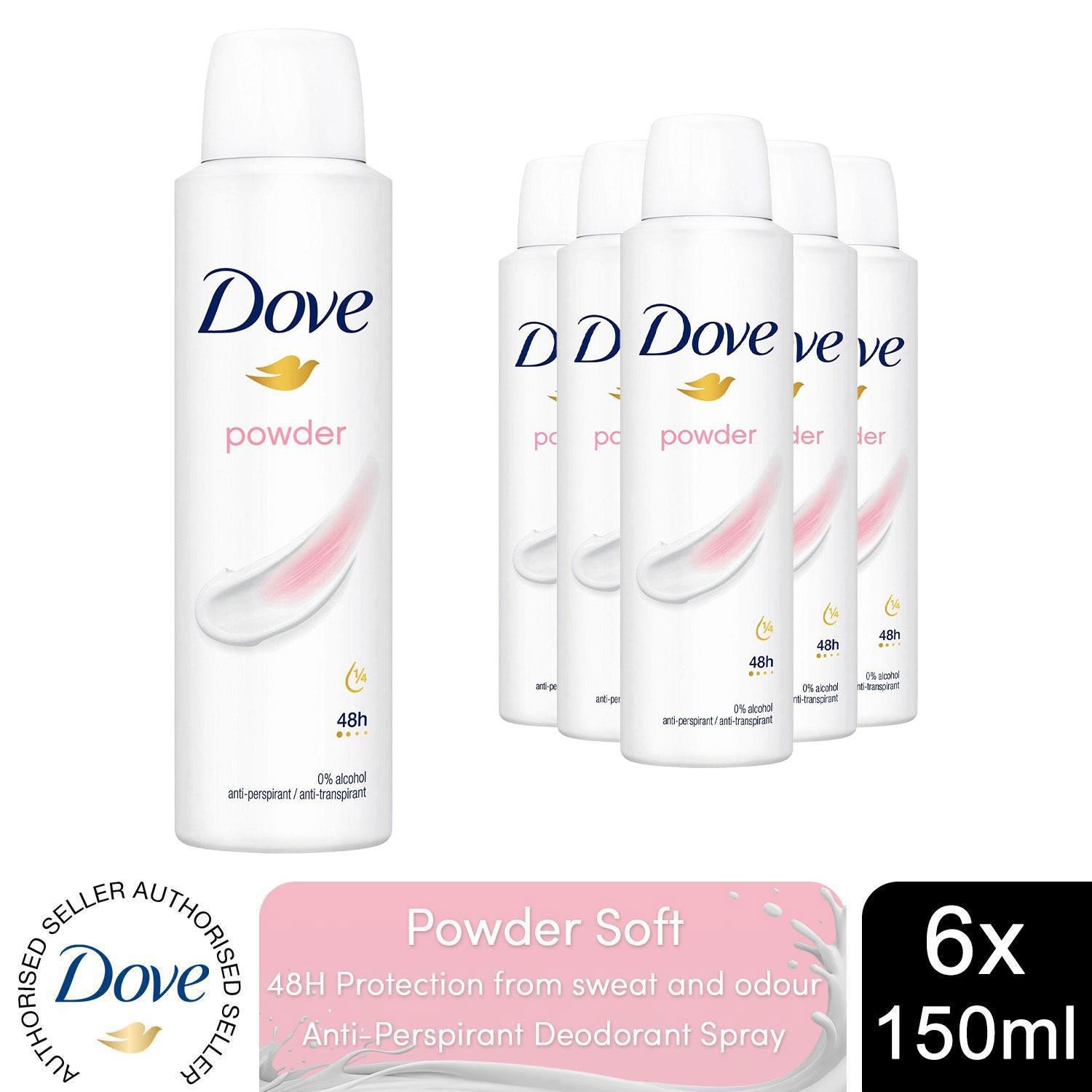 Dove Powder Anti-Perspirant with 48H Sweat Protection Deo for Women 150ml, 6pk