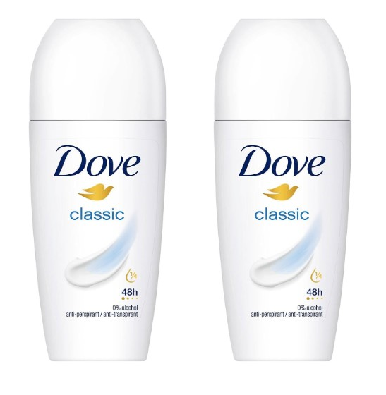2 x Dove Classic Roll On Anti-Perspirant 48H of Sweat & Odour Protection, 50ml