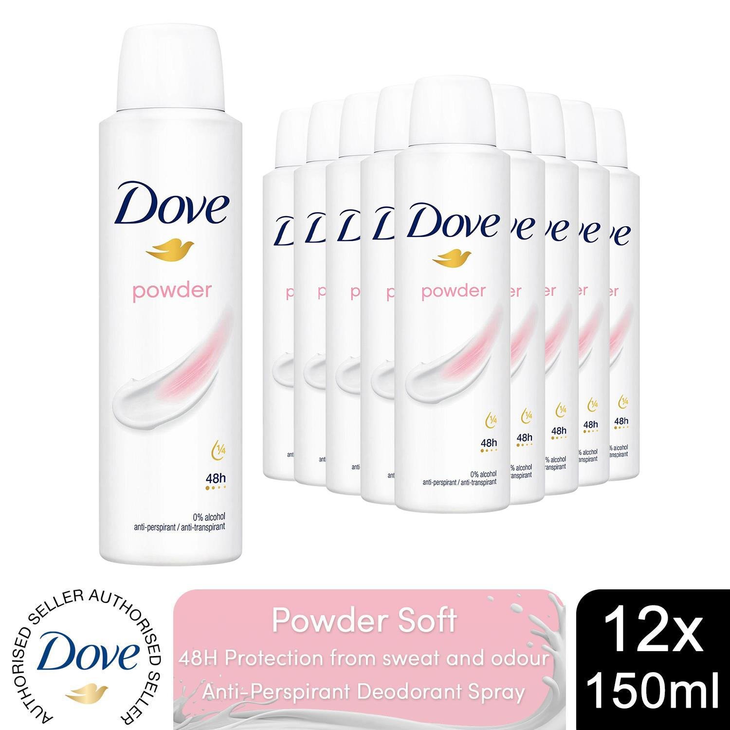 Dove Powder Anti-Perspirant with 48H Sweat Protection Deo for Women 150ml, 12pk